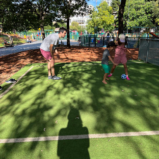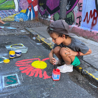 On en profite pour faire des activités avec les enfants, on joue beaucoup au soccer, on apprend à jongler et on fait de l'art de rue!